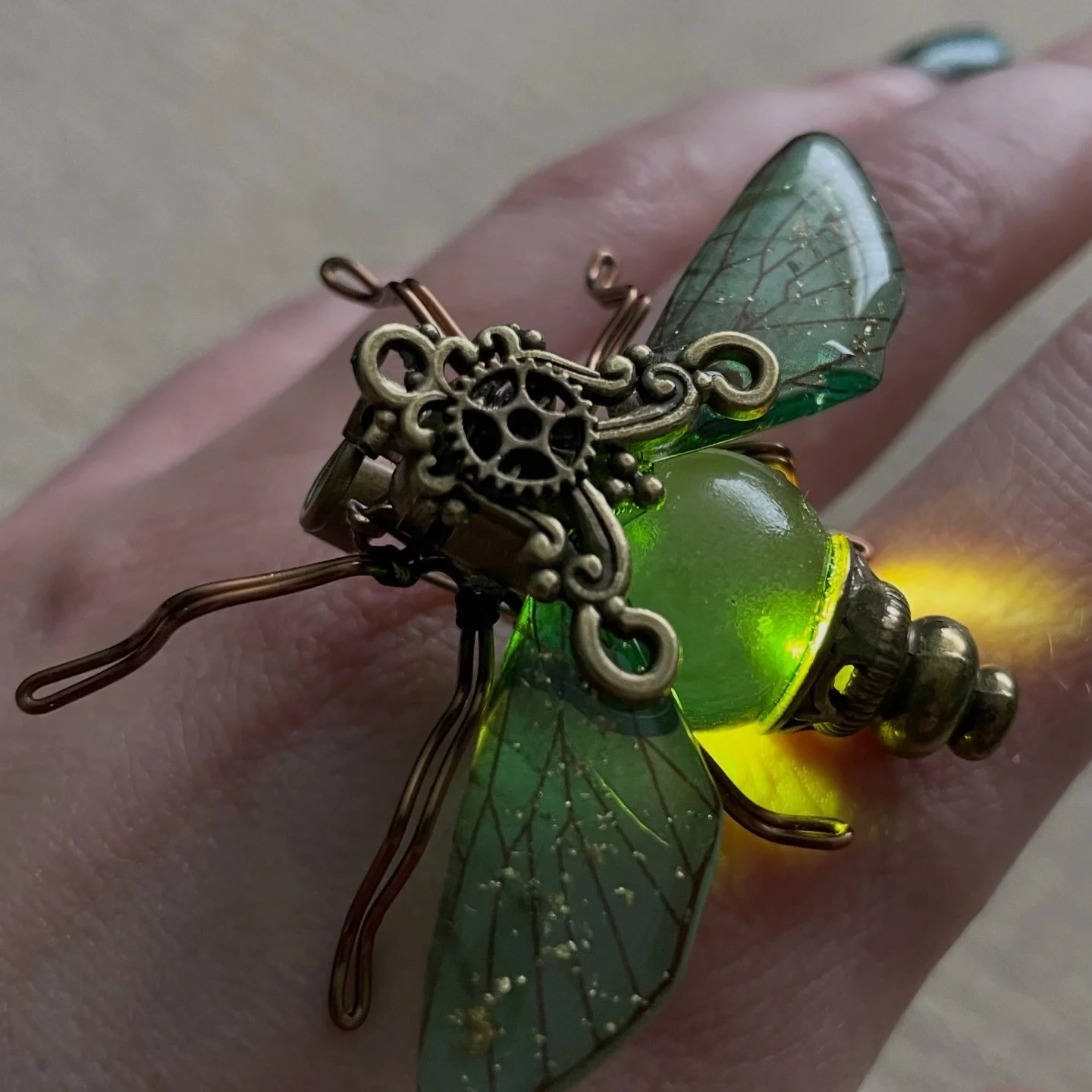 Perfect for steampunk enthusiasts, cosplay lovers, or anyone who adores unique handmade jewellery, this glowing bee brooch adds a touch of magic to any outfit.